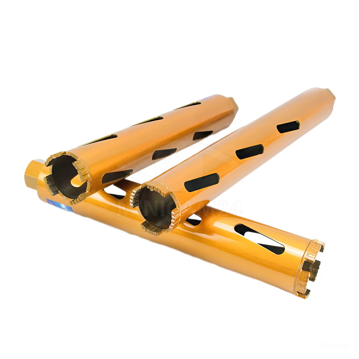 Коронка оснащена хвостовиком с резьбой M22, что обеспечивает надежное и плотное соединение с большинством стандартных бурильных установок. Алмазное покрытие на рабочей поверхности гарантирует высокую износостойкость и долговечность, позволяя инструменту справляться с интенсивными нагрузками и длительной эксплуатацией.