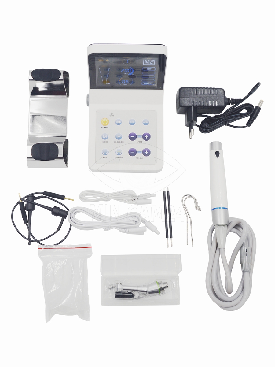 Эндомотор управляется сенсорными элементами и позволяет сохранять до 9 индивидуальных программ. Такое сочетание характеристик делает прибор удобным для точного контроля и настройки параметров при лечении корневых каналов.